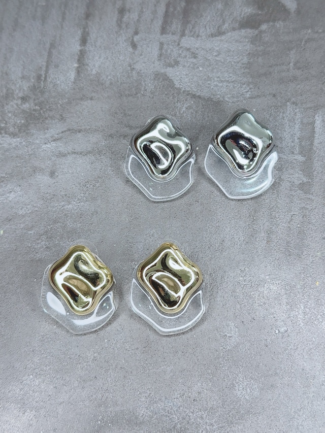 スクエアクリアメタルピアス