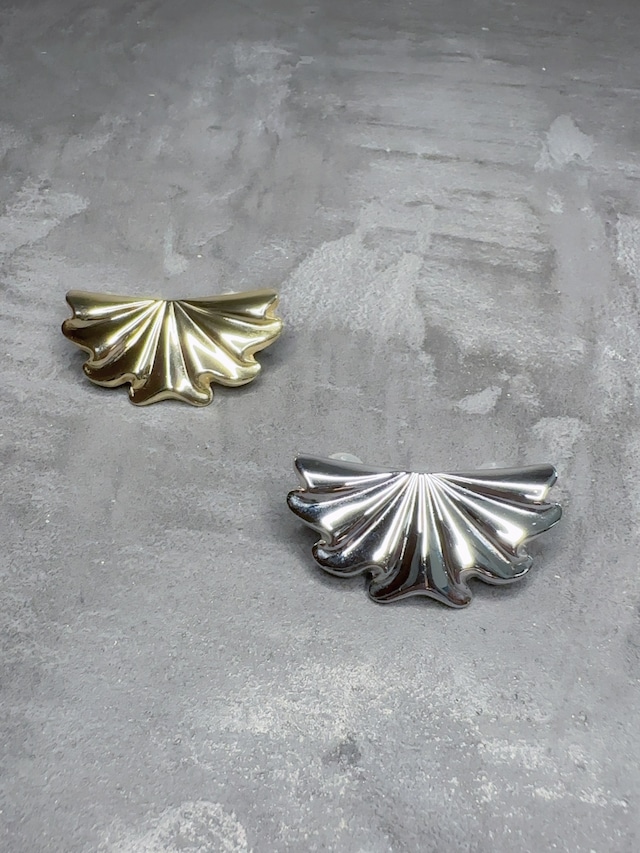 扇状に広がる立体的なドレープのかたちが印象的な、ヴィンテージパーツを使用した片耳使いのイヤリングです。 メタルのやわらかな艶が光を受けるたびに表情を変え、シンプルな装いやカジュアルなスタイルにも自然に馴染み、取り入れるだけで洗練されたモードな印象へと引き上げてくれます。 2点留めのクリップタイプなので、ピアスホールがなくても楽しめ、安定した着け心地も魅力です。 あえて片耳で楽しむスタイリングは、大人の余裕と遊び心を感じさせます。 ■ カラー/サイズ カラー/ゴールド、シルバー サイズ/縦46mm 横25mm ■ 素材/製造国 素材/真鍮 製造国/日本 ■ お手入れ/取り扱い注意事項 日常のお手入れは、柔らかい布で優しく拭くことをおすすめいたします。また、水に触れる場面や運動中の着用はお避けください。 ■ 発送・注文に関する情報や注意事項 ご注文はオンラインで承っております。発送は通常5営業日以内に行いますが、在庫状況によっては遅れることがございますので、ご了承ください。 ■ その他の情報や注意事項 商品の色味はモニターの設定や環境によって異なる場合がございます。気になる点がございましたら、お気軽にお問い合わせください。 ご質問やご不明点がございましたら、ショップのお問い合わせページからお気軽にどうぞ。