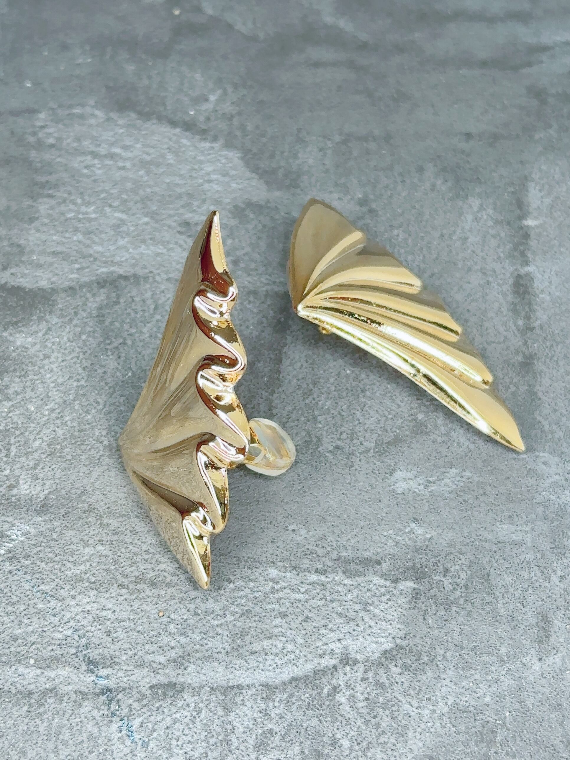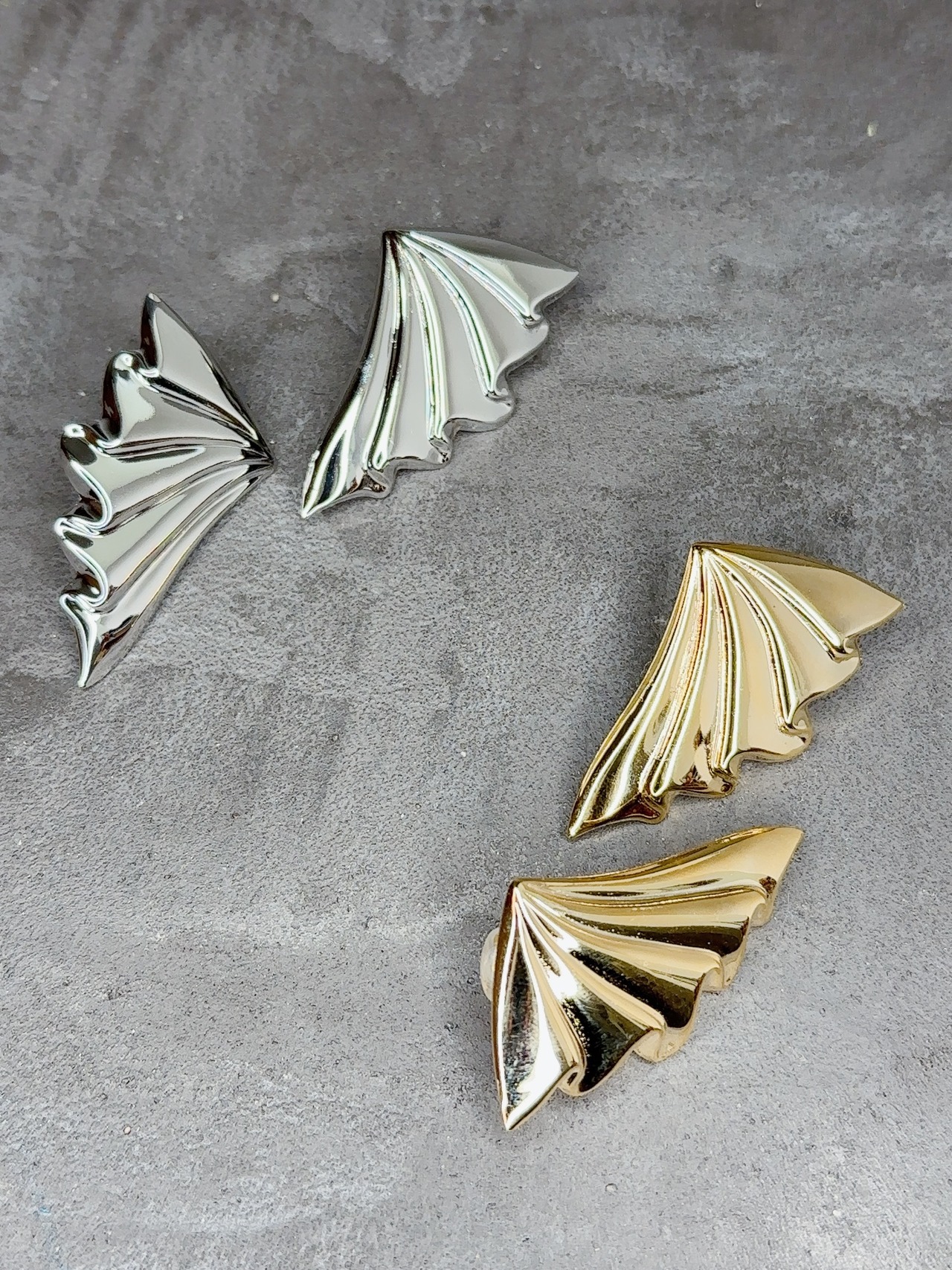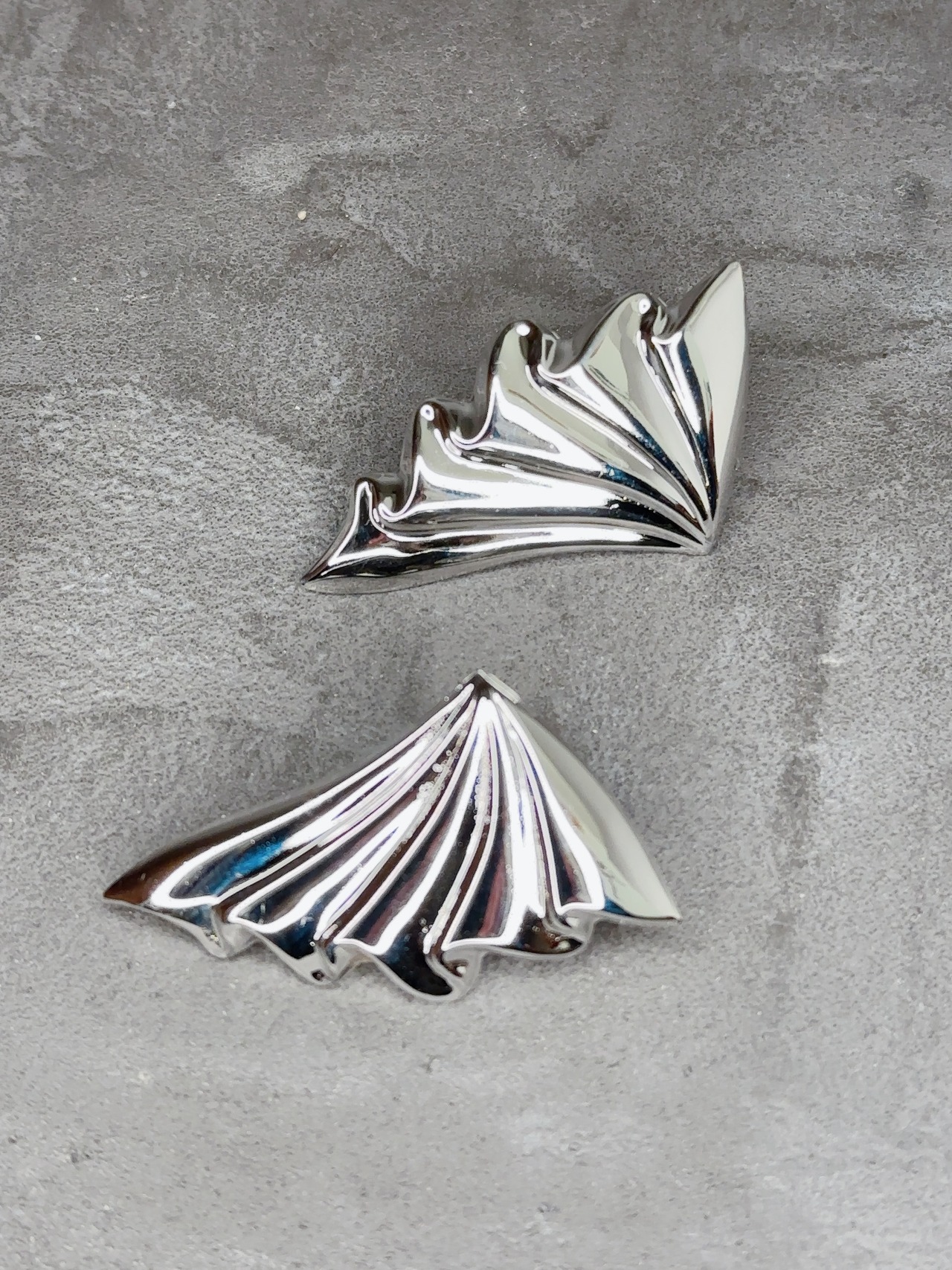 柔らかく波打つドレープラインが光を受け、耳元に奥行きのある表情を生み出します。