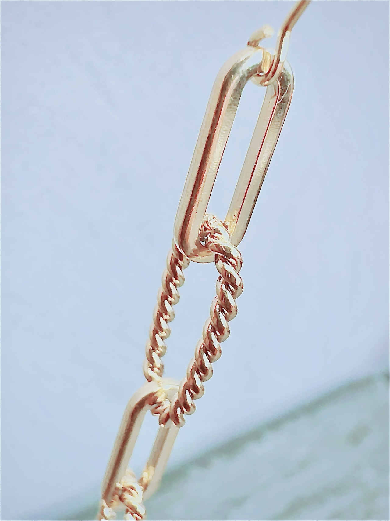 ツイストチェーンの程よい立体感が、シンプルな中に動きを与えます。シャープでありながら、どこか柔らかさも感じるデザインは、シンプルな装いにプラスするだけで洗練された印象になります。
