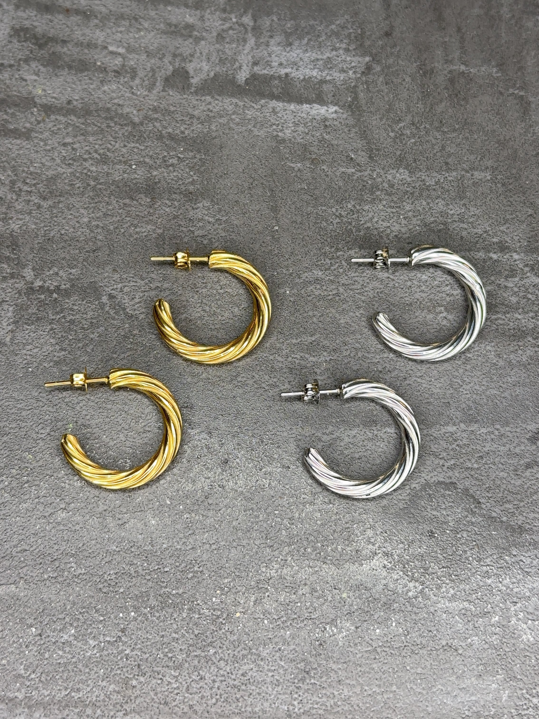 艶やかな輝きと、緩やかなツイストラインが印象的なロープフープピアスです。
