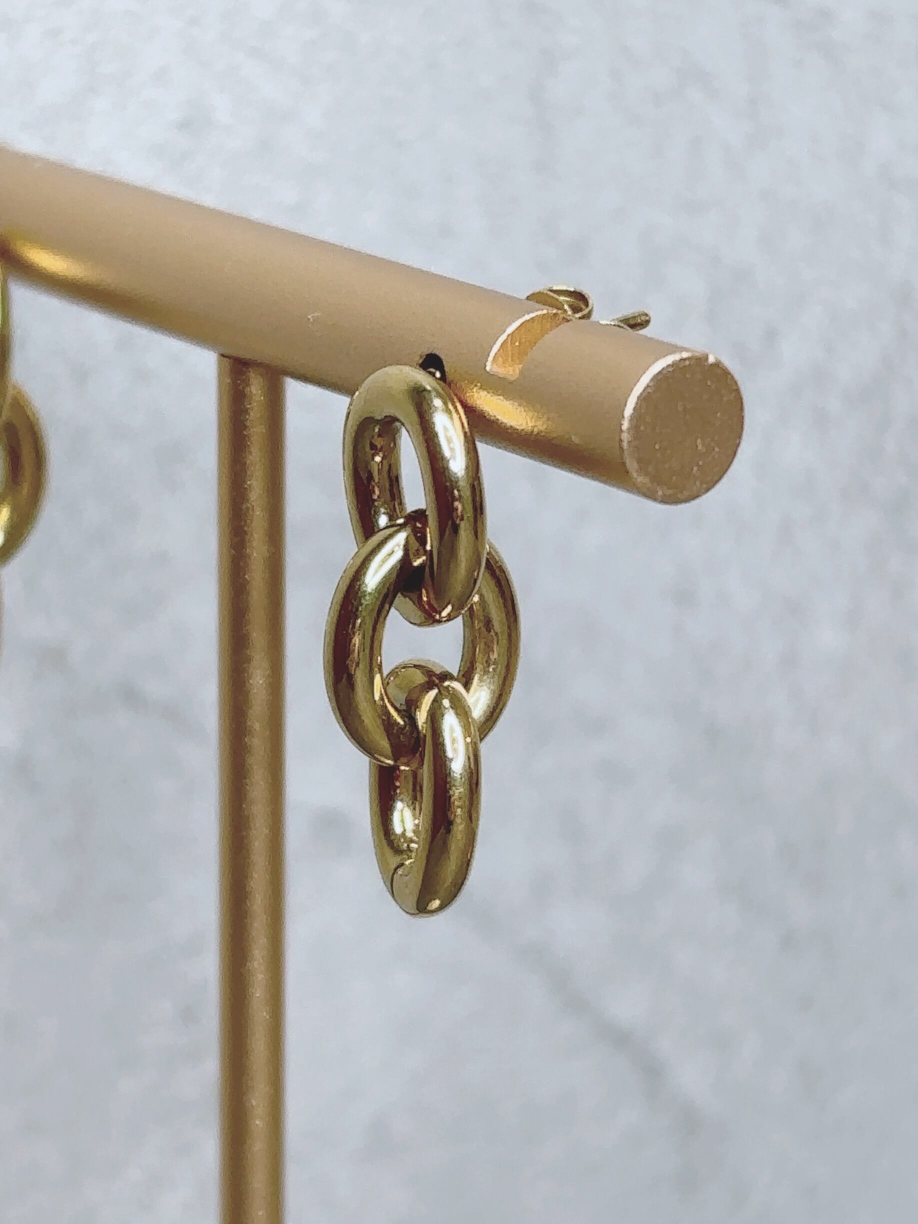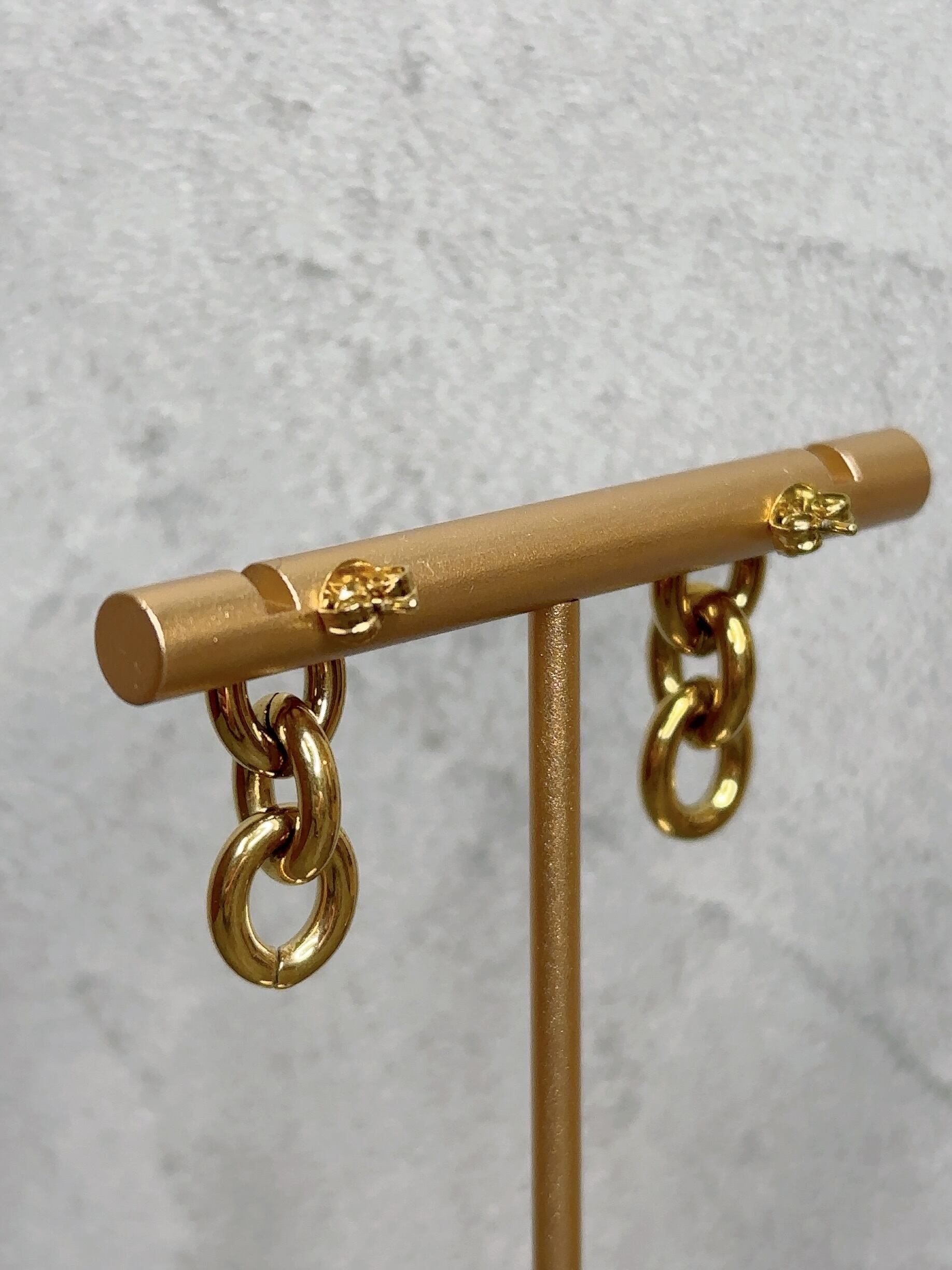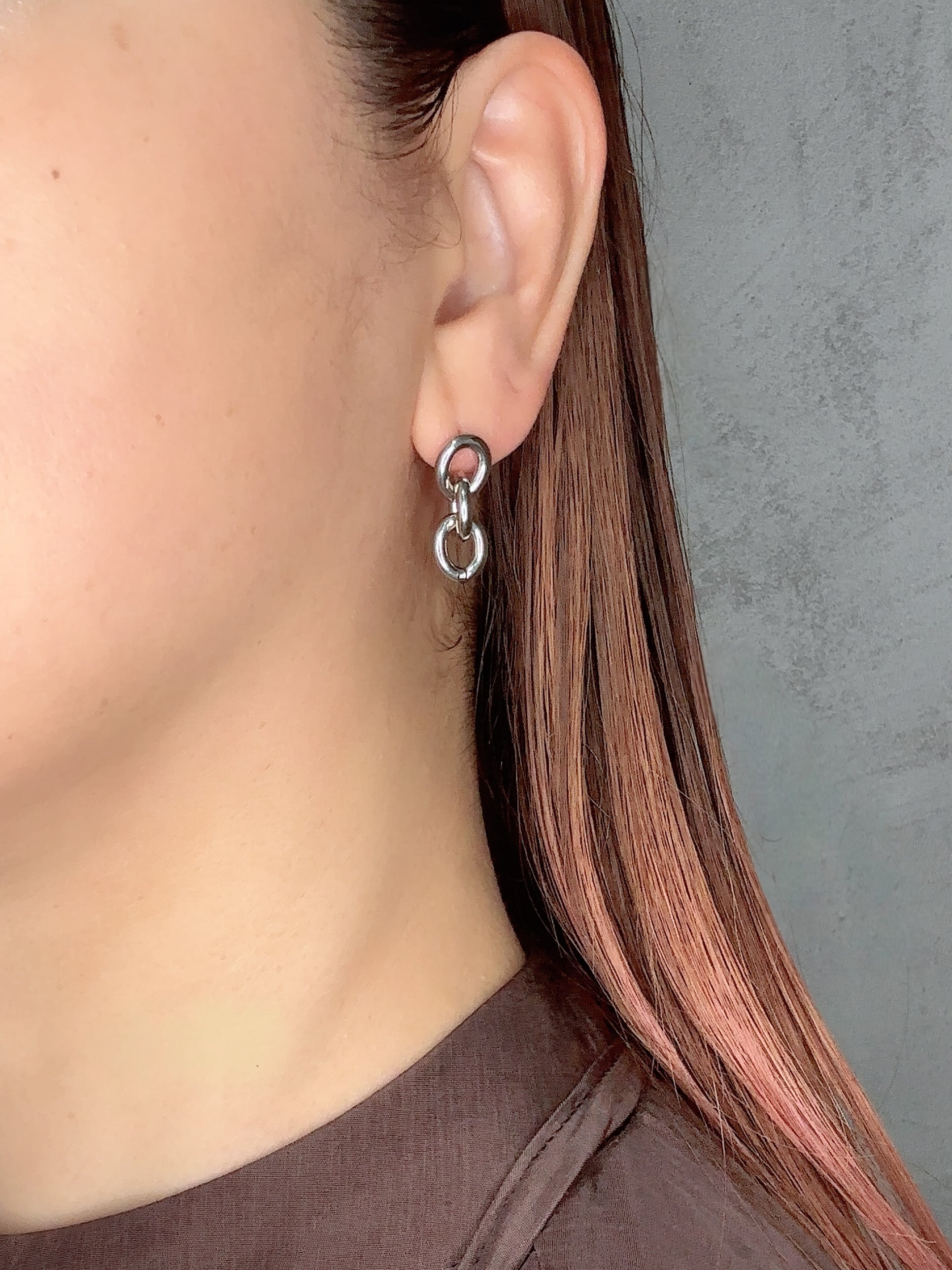 程よいボリューム感が魅力のチェーンモチーフのダブルリンクピアスです。